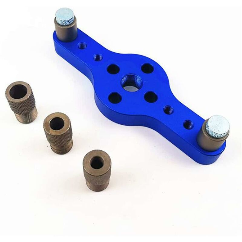 ZDD Con un foro da infilare in legno e una funzione di perforazione verticale, questo è lo strumento perfetto per i mobili a pannello. La maschera autocentrante e la guida regolabile consentono un allineamento preciso dei perni per la massima resistenza articolare. Puoi pulire rapidamente il design della scanalatura per rimuovere la polvere. Può essere pulito e messo in un armadio. Non occupa molto spazio e può essere ben riposto, veloce da usare. Le linee centrali assicurano un allineamento preciso durante la perforazione in varie superfici. Praticare con precisione, praticare un foro uniformemente distanziato lungo il legno. Dima guida trapano per foratura verticale, trova facilmente il centro dal bordo di una tavola ogni volta. Gli anelli metallici garantiscono un allineamento preciso durante la perforazione per ancoraggi perfettamente posizionati. Colore: Blu Localizzatore di perforatori per fori Localizzatore di punzoni in lega di alluminio Strumento per la lavorazione del legno