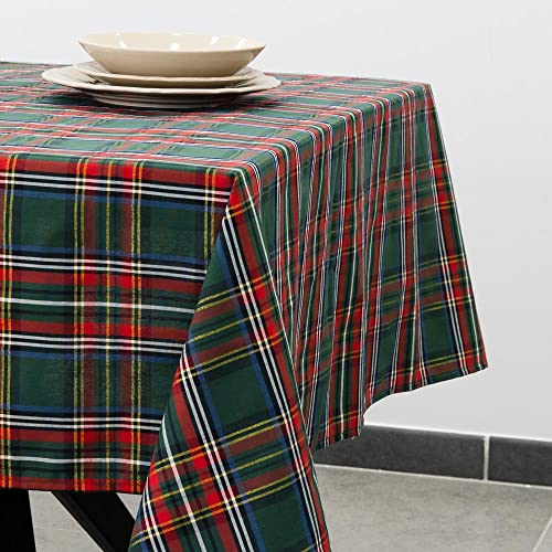 Declea Home Decor Tovaglia Tartan con filo in Lurex, Scozzese Folklore Pattern, Rettangolare per Sala da Pranzo e Cucina, Tovaglia Natalizia Made In Italy, 140 cm x 240 cm, Verde