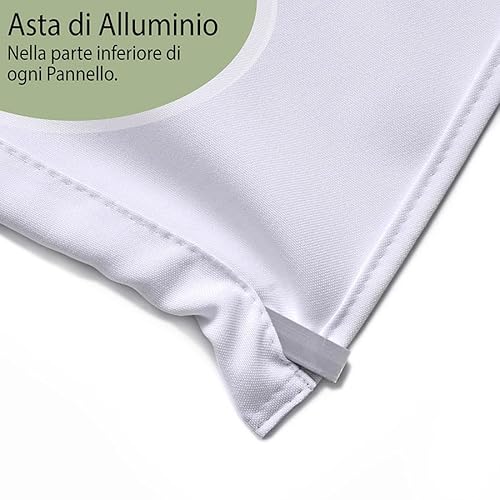 Pannello con il pratico sistema di fissaggio a velcro superiore. Inclusa asta in alluminio removibile inferiore.