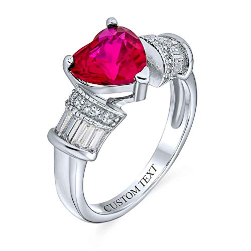 Art Deco Style 2.5CT Red Pink Heart Shape Solitaire CZ Engagement Ring Baguettes Side Stones Simulated RED Ruby .925 Sterling Silver Promise Ring Custom Engraved