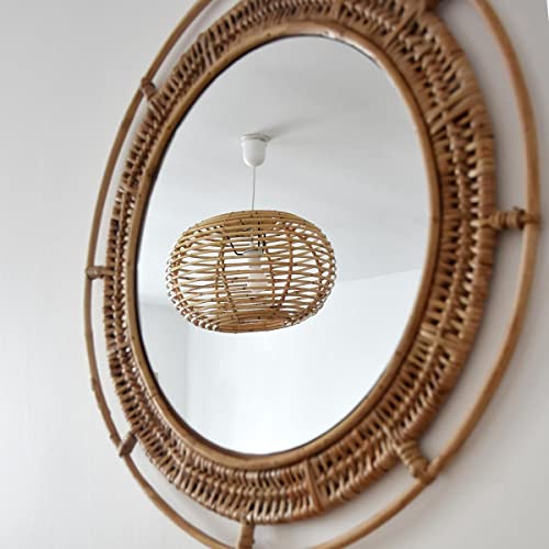 Specchio rotondo intrecciato in rattan, ideale per ingresso, camera da letto, o per dare l'impressione di un'apertura con la sua forma che fa pensare a una finestra oblò