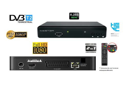 Decoder digitale terrestre DVB T2 HDMI 1080p SINTONIZZAZIONE AUTOMATICA. HEVC riceve TUTTI i canali gratuiti, uscite USB, SCART, USB