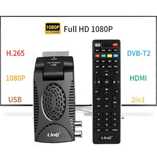 Decoder DVB-T2 HD 1080p H265 HEVC Ricevitore Digitale Terrestre HDMI 1080P 10 Bit 60 FPS, USB WiFi Supporto, SCART, Ethernet, Universal Remote Control (E)