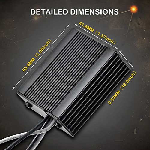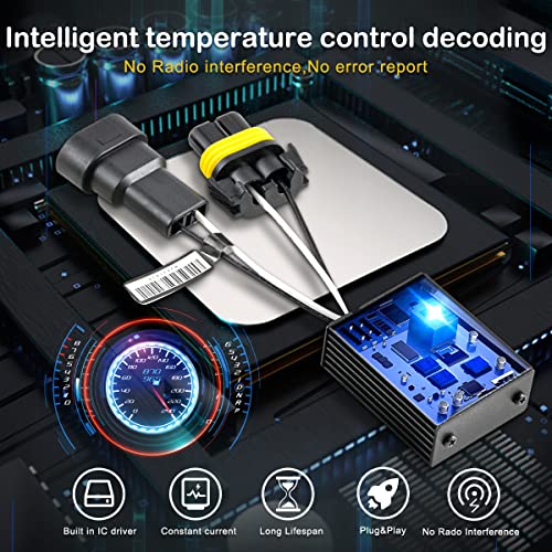Tensione DC 9-16 (V), uscita: 35 W, corrente elettrica: 5 (A), il meterial in lega di alluminio presenta il decoder con una buona dispersione del calore e aiuta a prolungare la durata del decoder fino a 3, 9000 ore. Universal si adatta al veicolo dotato di lampadine per fari a LED 9005, HB3, H10, 9006, HB4, 9012.