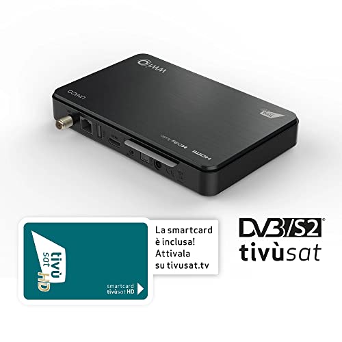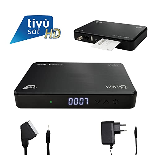 Decoder Ricevitore Digitale Satellitare 12 Volt HDMI e Scart Certificato Tivusat HD WWIO UNICO DVB-S2 Con Card Tvsat Inclusa e Telecomando 2 in 1 Nero