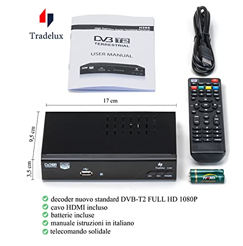 Decoder Dvb T2 Ricevitore Digitale Terrestre 2022 Mpeg 4 Full Hd 1080p Hevc 265 10 Bit Dolby Lista Canali Numerata funzione registrazione Usb Telecomando Solidale 2 In 1