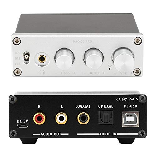 Decodificatore Audio, decodificatore Audio DC5V AC-Q3 PRO DAC con Amplificatore per Cuffie, per Cuffie da 3,5 mm, Set di Chip MS8412 + SA9023 + NE5532 + 97220(Argento)