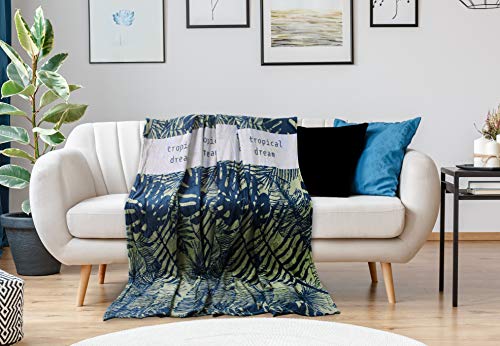 DecoKing Comoda e Confortevole Coperta 70x150 cm in Microfibra Estremamente Morbida Pile Soffice Verde Blu Grigio Rainforest Jungle Collection