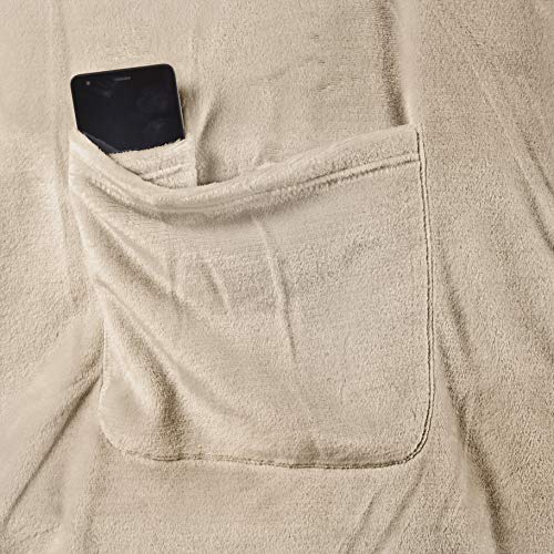 DecoKing Coperta Personalizzata con Maniche per TV in Microfibra e tasca Morbido Poliestere Cappuccino 150 x 180 cm Lazy