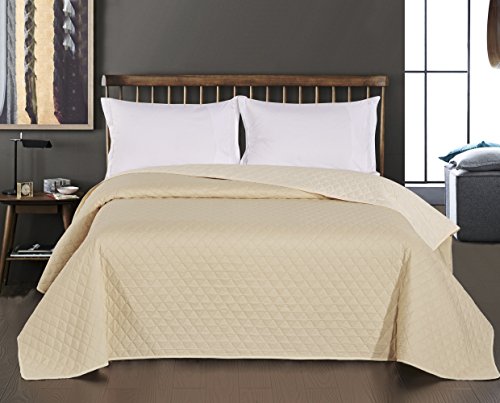 DecoKing Copriletto Double-Face, Dimensione Matrimoniale/King, 220 x 240 cm, Color Crema, Trapuntato, Leggero, in Microfibra, Tagliato a ultrasuoni
