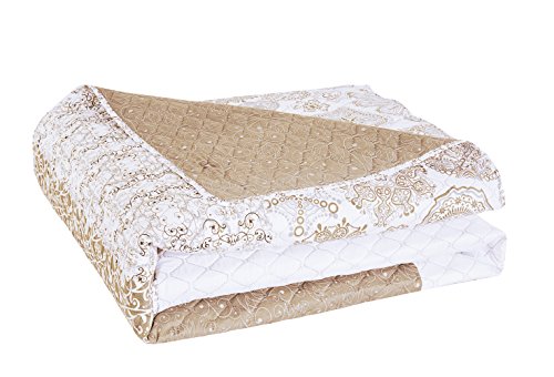 DecoKing Copriletto Reversibile Motivo Floreale Stampato Crema Beige Bianco Alhambra 2 piazze Matrimoniale 240x260 cm