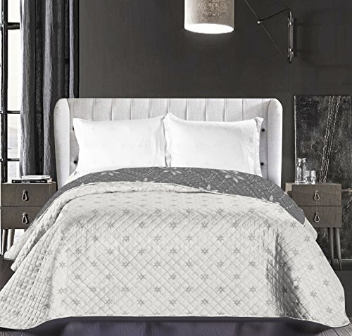 DecoKing Copriletto Trapuntato Reversibile Bianco Grigio Acciaio Antracite Motivo Geometrico 1 Piazza e Mezza 220x240 cm Hypnosis Collection Snowynight