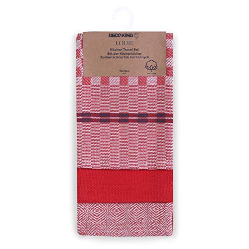DecoKing Set di 3 Strofinacci da Cucina 50x70 cm Laccetto 100% Cotone Canovaccio per Stoviglie di Gran Valore Rosso Louie