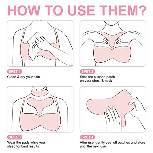 PATCH RIUTILIZZABILI FACILI DA USARE - L'applicazione del nostro adesivo in silicone per il décolleté e le imbottiture per il collo nelle aree desiderate aiuta ad aumentare la circolazione sanguigna, stimolare la produzione di collagene e portare a una migliore elasticità della pelle e a una pelle più soda e liscia. Silicone Patch Cleanser per i migliori risultati.