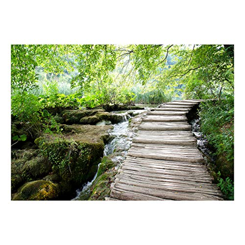 Decomonkey carta da parati Paesaggio 250x175 cm fotomurali non tessuto murale XXL Poster moderna decorazione Carta per pareti Cascata Montagne Legno Bosco Foresta Fiume verde