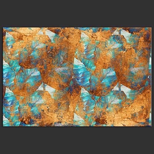Decomonkey Quadro Stampa su Tela moderno Astratto 90x60 cm 1 pezzo Murale Fotografia Immagini Decorazione da parete Grafica Arte Lascia Natura Pianta blu d'oro