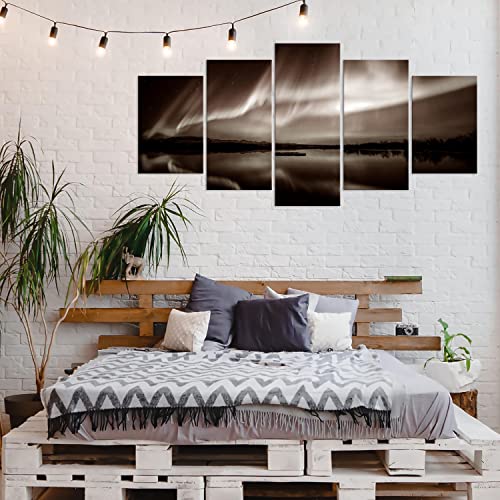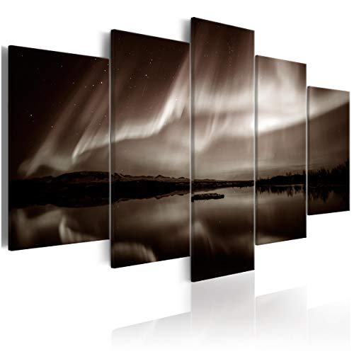 Decomonkey Quadro Stampa su Tela moderno Aurora Boreale 100x50 cm 5 pezzi Murale Fotografia Immagini Decorazione da parete Grafica Paesaggio Notta Natura Astratto Sepia nero marrone beige