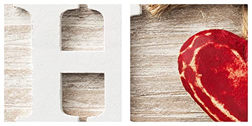 Decomonkey Quadro Stampa su Tela moderno Home 200x100 cm 5 pezzi Murale Fotografia Immagini Decorazione da parete Grafica Casa Di Legno Cuore Vintage Retro Astratto bianco beige rosso