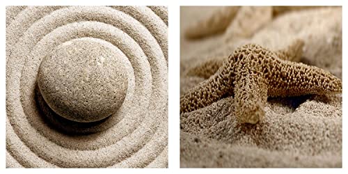 Decomonkey Quadro Stampa su Tela moderno Spiaggia Set di 4 pezzi 40x40 cm Murale Fotografia Immagini Decorazione da parete Grafica Zen Conchiglia Sabbia Natura Mare Pietra beige