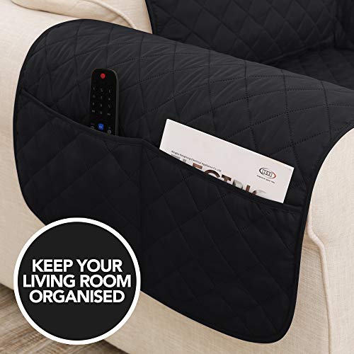Deconovo Copridivano 3 Posti Antiscivolo Universale con Tasche e Motivo Quadrato Fodera Divano Trapuntato Protegge Il Mobile per Cani/Gatti AntiGraffio Nero