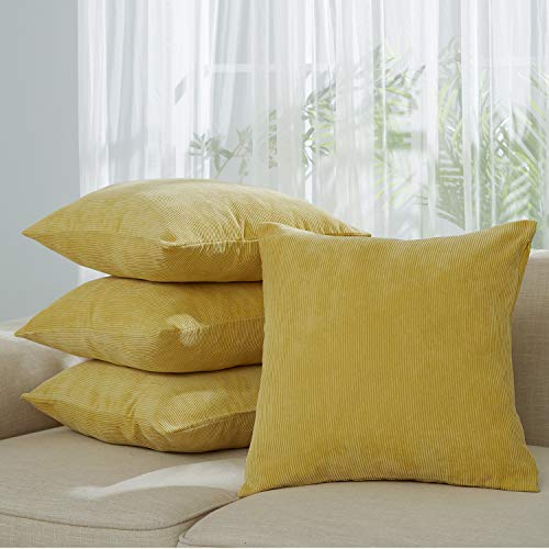Deconovo Federa per Cuscino Copricuscino con Chiusura Lampo Decorativo per Divano 45x45cm Giallo Set da 4