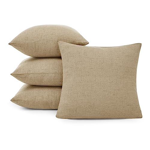 Deconovo Set di 4 Federe per Cuscini Divano in Finto Lino Copricuscino Decorativo Quadrato con Cerniera Invisibile per Soggiorno, 45x45cm, Lino Chiaro