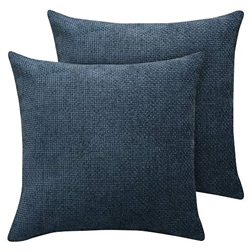 Deconovo Set di 2 Fodere Cuscino Letto Divano Copricuscino per Salotto Morbido in Lino con Cerniera 45x45cm Blu Scuro