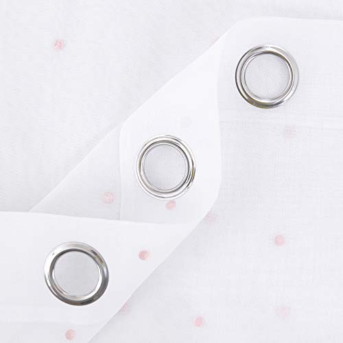 Deconovo Tende Cameretta Bambini Trasparenti Ricamate Cerchi Rosa in Voile con Occhielli per Porta Finestre 140x245 CM Bianco 2 Pannelli