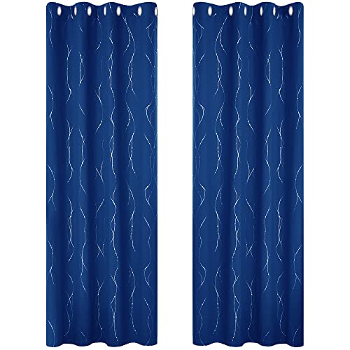 Deconovo Tende per Interni Oscuranti, Tende Camera da Letto con Anelli per Salotto Eleganti con Stampa Fili e Cerchi, 140x180 CM (Larghezza x Altezza), Blu Elettronico, 2 Pannelli