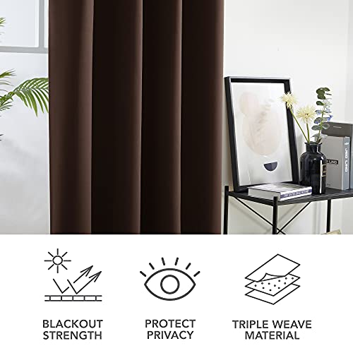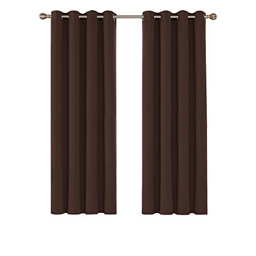 Deconovo Tende per Interni Oscuranti Termiche Isolanti, Tende Camera da Letto Tinta Unita 2 Pezzi, con Occhielli, 132x160 CM (Larghezza x Altezza), Cioccolato