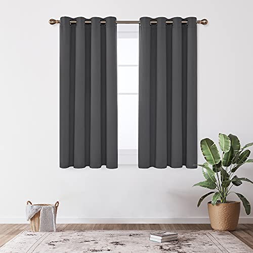 Deconovo Tende per Interni Oscuranti Termiche Isolanti, Tende Camera da Letto Tinta Unita 2 Pezzi, con Occhielli, 117x138 CM (Larghezza x Altezza), Grigio Scuro