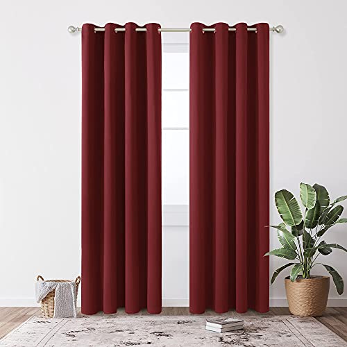 Deconovo Tende Oscuranti per Interni 2 Pezzi 175 CM Altezza, Tende Termiche Isolanti con Occhielli per Soggiorno Moderne, 140x175 CM (Larghezza x Altezza), Rosso Scuro