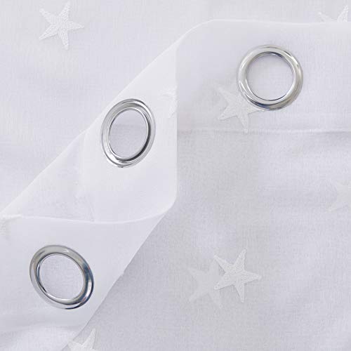 Deconovo Tende Trasparenti Camera da Letto in Voile Ricamate Moderne per la Casa con Occhielli 140x290cm Stelle Bianco 2 Pannelli