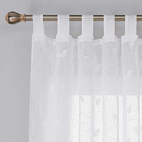 Deconovo Tende Trasparenti in Voile Ricamate con Passanti per Finestre Soggiorno 140x245cm Bianco 2 Pannelli