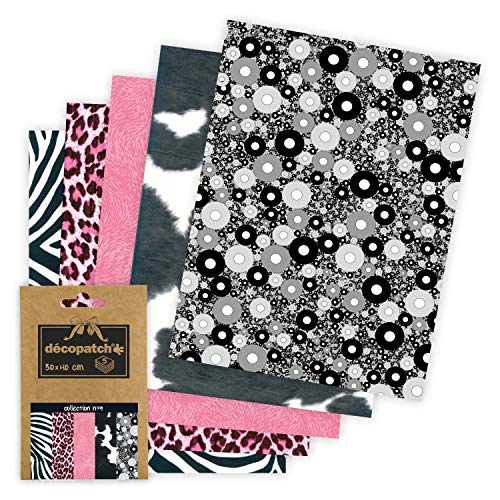 Decopatch DP009O - busta da 5 fogli di carta Decopatch, Carta stampata, 30x40 cm, motivi assortiti, rosa e nero