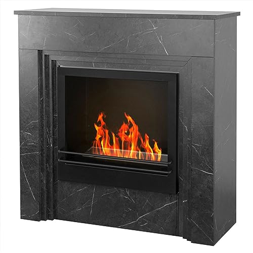 Decor Space Camino a bioetanolo "Bellini" da terra in legno biocamino per interno h 96 cm (Marmo Nero)