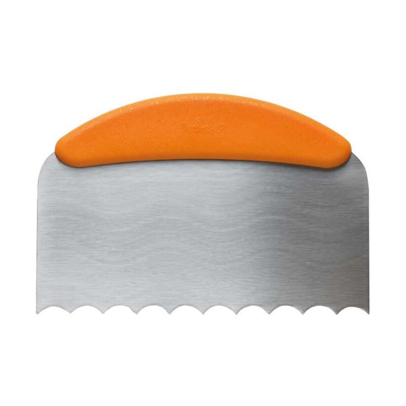 Spatola in acciaio inox con un comodo manico ergonomico e antiscivolo. La spatola ondulata è perfetta per decorare i bordi delle torte con texture originali. La lama lunga oltre 20 cm la rende adatta anche a torte molte alte. Lunghezza lama: 22,5 x 11 h cm.