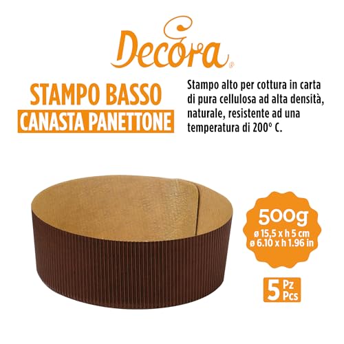 Decora, 0320165 5 Forme per Panettone Basso da 500 g, in Carta Rigida di pura Cellulosa, Resiste a Temperature di 200 °, Ideale per Realizzare un Panettone in Casa, Made in Italy