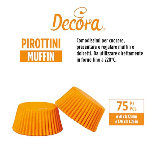 Decora, 0339705 Pirottini Arancio, Comodissimi Pirottini in Carta da Forno, per Cuocere, Presentare e Regalare Muffin, Resistono fino a 220°, In comodo Blister