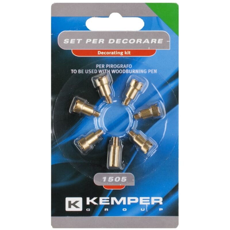 Utilizzabile su pirografo art. 1500KIT e 1500PRO. Set per decorare pirografo Set di 7 accessori di varie forme per decorare con pirografo professionale elettrico. Ideale per lavori di precisione su legno, cuoio, sughero. Utilizzabile su pirografo art. 1500KIT e 1500PRO.