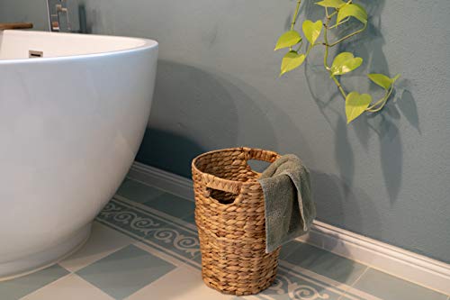 Decorasian Cestino portaoggetti intrecciato in giacinto d'acqua, pattumiera con manico, diametro 25 cm, fondo 19 cm, altezza 32 cm