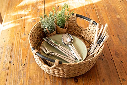 Decorasian Cesto portaoggetti rotondo intrecciato in zostera con manici in legno, giacinto d'acqua, 42 cm, grande