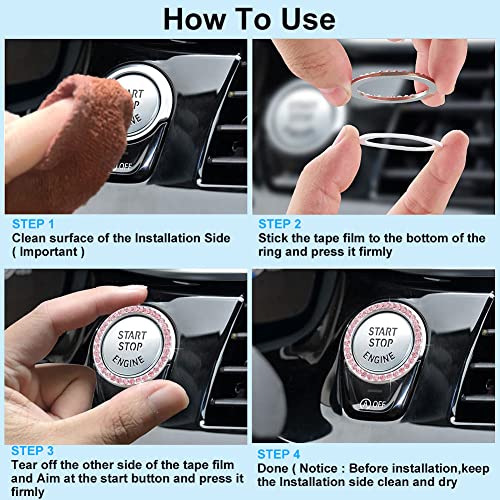 ✨Facile da installare: ogni Anello di Decorazione di Arresto di Avviamento Dell'auto in Cristallo ha del nastro adesivo per aiutarti a installarlo facilmente. Basta staccare un lato del nastro e incollarlo all'aureola, quindi staccare l'altro lato del nastro e fissarlo saldamente al bottone.