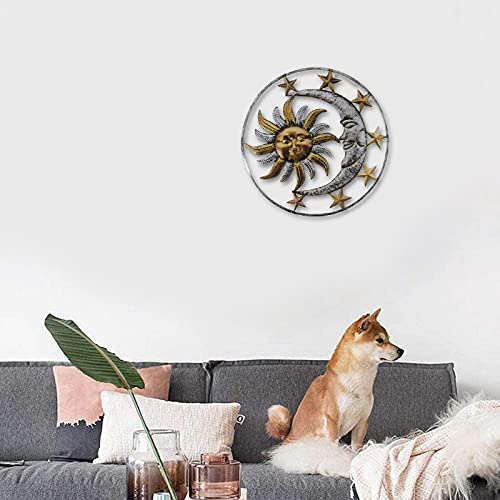 Decorazione artistica da parete in metallo, statua creativa della stella del sole e della luna, ornamento appeso, statue del sole, decorazione della parete del sole per la casa, soggiorno, giardino