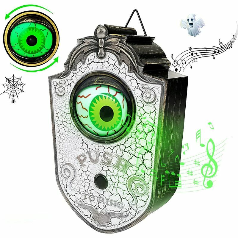Aggiungi atmosfera: la superficie in bronzo a strisce in stile retrò crea un'atmosfera da casa stregata. La luce dell'occhio verde è molto luminosa e si illumina al buio per aggiungere uno strano colore ad Halloween, permettendoti di diventare la mente della scena horror.Facile da usare: basta premere il pulsante del campanello, l'occhio rivela sangue rosso vivo e un strana luce verde. Ci sono fori sul retro per appenderlo facilmente e utilizzato per la decorazione della parete, la decorazione della porta e la decorazione della festa. Installazione: il foro di installazione nella parte inferiore posteriore è comodo per l'installazione, l'installazione con un clic e il divertimento senza fine. Richiede 3 batterie AAA (non incluse). Halloween Essentials: con un gancio, appendi dove vuoi. Le decorazioni per porte di Halloween sono molto adatte per essere appese in interni/esterni o su balconi, muri, alberi, case infestate, ecc. Questo spettrale campanello magico ti stupirà questo