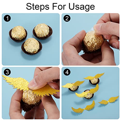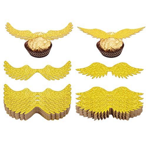 Ampia applicazione: Le ali dorate sono la decorazione perfetta per cioccolatini, caramelle, torte o altri cibi e oggetti. Ottimo per feste magiche, compleanni, matrimoni, Natale, ecc.