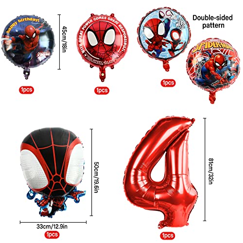 Decorazione per Compleanno 4 Anni, Palloncino Spider-man, Palloncini Compleanno Bambini, Palloncini Compleanno 4 Anni Spider-man, Decorazione Festa di Compleanno per Ragazzi e Ragazze