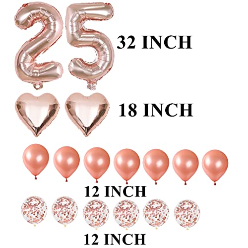 Decorazione di compleanno 25 oro rosa per 25° compleanno, per ragazze e donne, palloncini per 25° compleanno, festone Happy Birthday, numero gigante 25 palloncini in pellicola