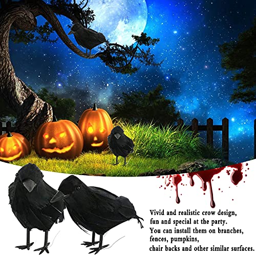 Decorazione Corvo Nero, 2 Pcs Decorazione Halloween Corvo, Realistici Piuma Corvi Fatta Mano, Decorazione Halloween Prop, Adatto a Giardino, Portico, Albero, Cortile, Feste All'Aperto