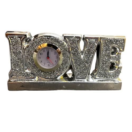 Decorazione decorativa in argento con scritta "I Love U/Famiglia/Love/Home" con strass a forma di scintilla e scritta in lingua inglese "Love U" (lingua italiana non garantita)